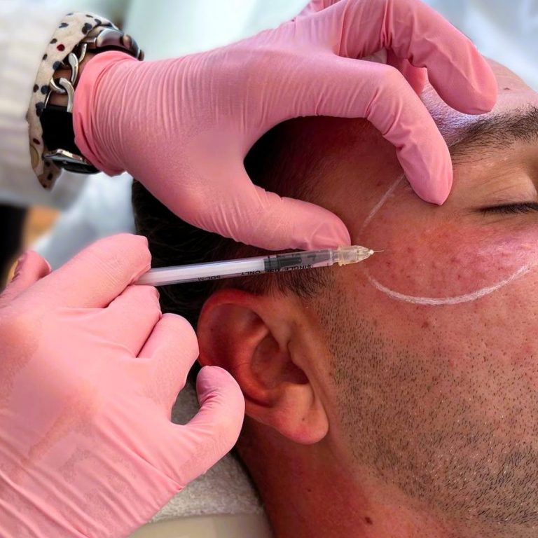 Die Behandlung erfolgt ambulant und dauert in der Regel etwa 30 Minuten. Besonders empfindliche Areale wie die Stirn werden zusätzlich mit einer betäubenden Creme vorbereitet.